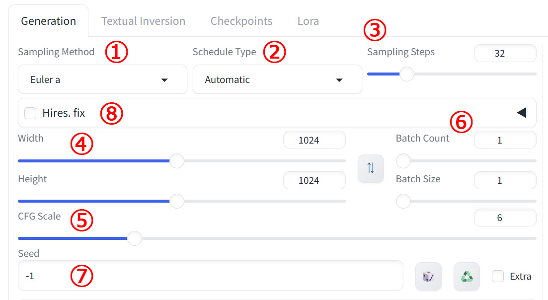 - Sampling Steps や CFG Scale はいくつだったか